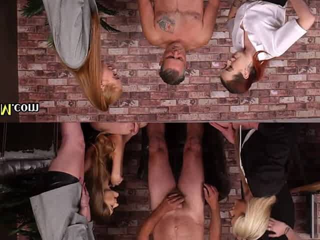 Dangerous dominatrixes tie up sissy ass in cfnm group action