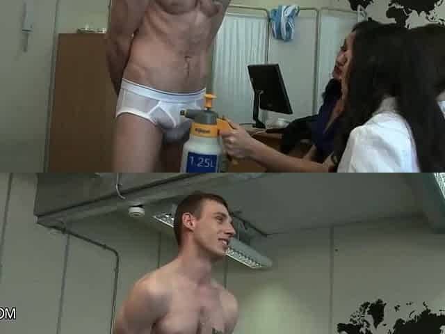 European nurses, naked man, jerk off black cock in threesome for cumshot sample
