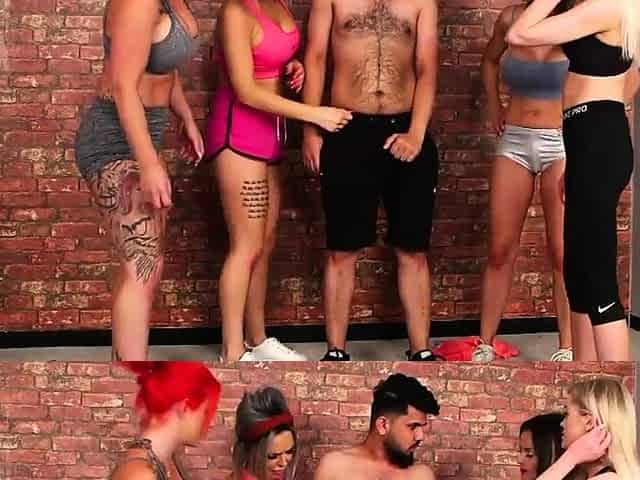 CFNM British strippers suck rod in group