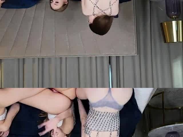 Two Amazing Looking Babes Wrestling with a Couch