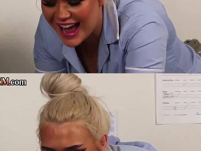 CFNM busty British nurses in lingerie suck rod in 3some