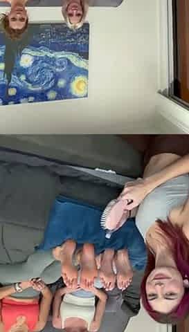 Lick our toes, Spit on our feet, have a fun our smelly feet! foot thrall gets to smack the foot threesome!
