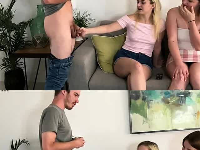 CFNM 21yo femdom gals suck cock in 3some