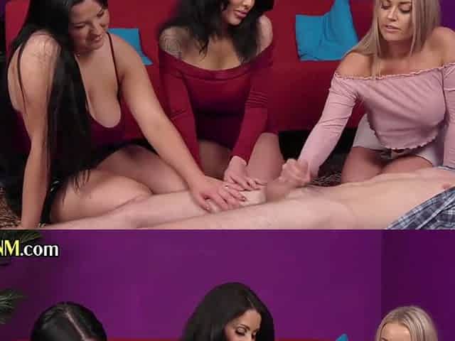 CFNM femdoms blow and stroke stud wang untill cum ending