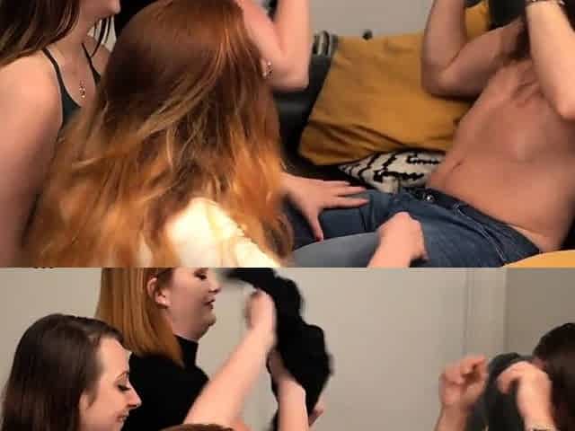 LADIES USE STUDS - CFNM ding-dong domina pegging her resigned in trio
