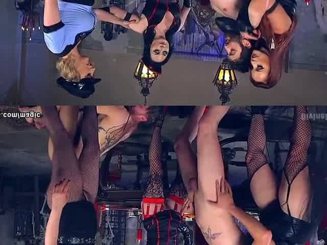 Femdom strapon babes in group pegging of sissy asshole