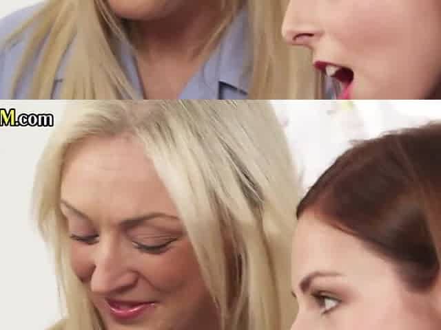 CFNM nurses suck and wank patient cock in femdom 3some