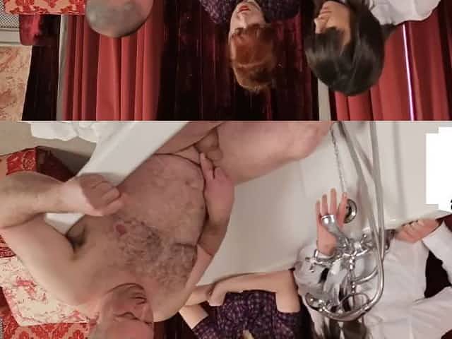 Tiny dick CFNM dominas wanking asian sub in kinky group