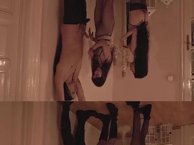 Mistress queen with small dick and jerking off their submissive in group
