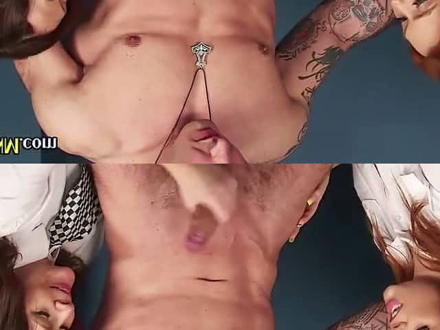 PURE CFNM HD - Glam cfnm dommes aggressively jerk off their sub in group
