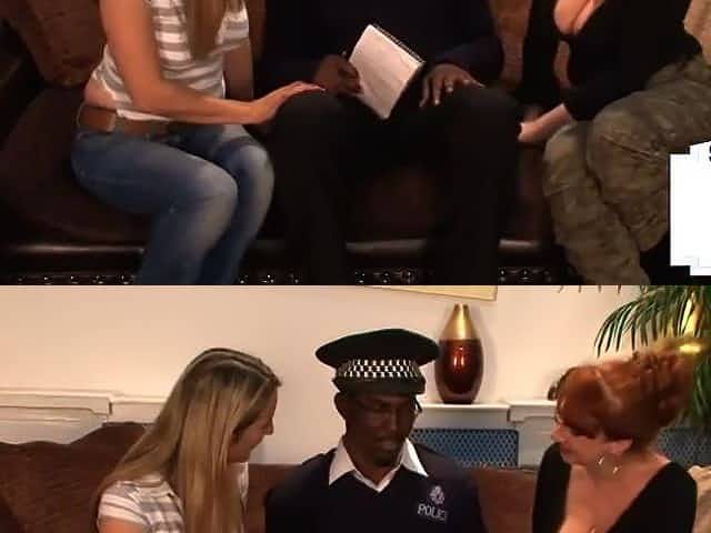 Tiny dick dominatrixes jerk off pathetic cops in threesome
