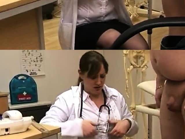 British cfnm nurses jerk off Tonys cock in the doctors office