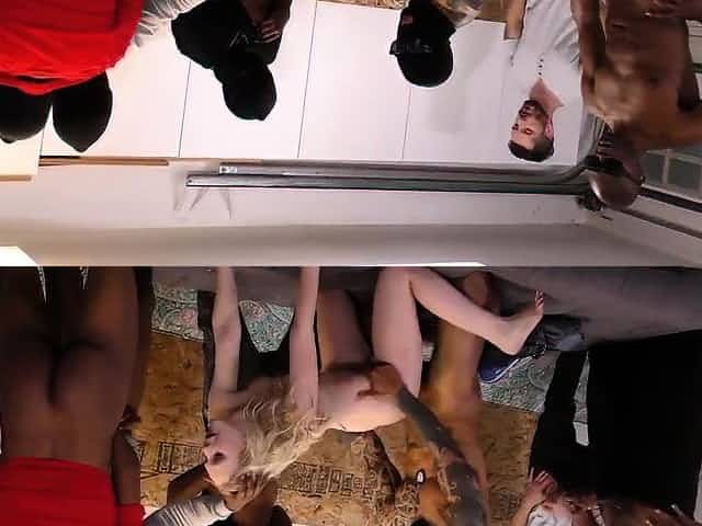 Teen cuckolds in gangbang