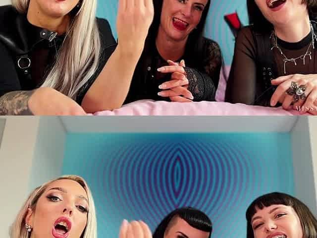 Goddess Nika and Mastix Lara sex tool play with thrall's weenie and balls. Chastity thong