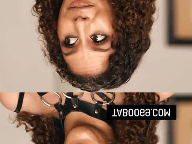 Two Dominatrix fucked the maid in the mouth and ass with strapons. latex fetish.