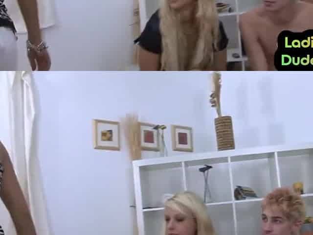 Short-haired Towheaded Girl and Brunette in Restrain Bondage Fuck Boy in Hottest XXXX!