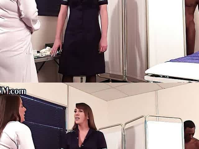CFNM nurses jerk small cock in group