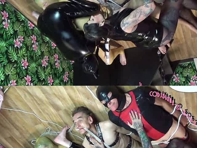 Coarse Lesbo Latex, Foot, Squirt and Void urine Domination with Dolly Dyson & Mia Stone
