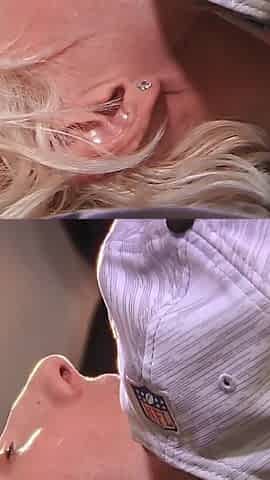 Two busty tattooed blonde lezzies finger and lick in bed