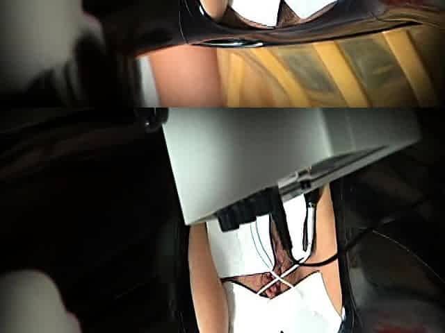 Femdom June Fontaine and her partner in a pantyhose fetish scene.