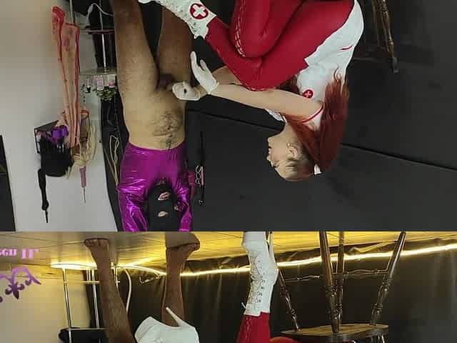 Spandex-clad nurse Natallien takes on the role of a femdom dominatrix