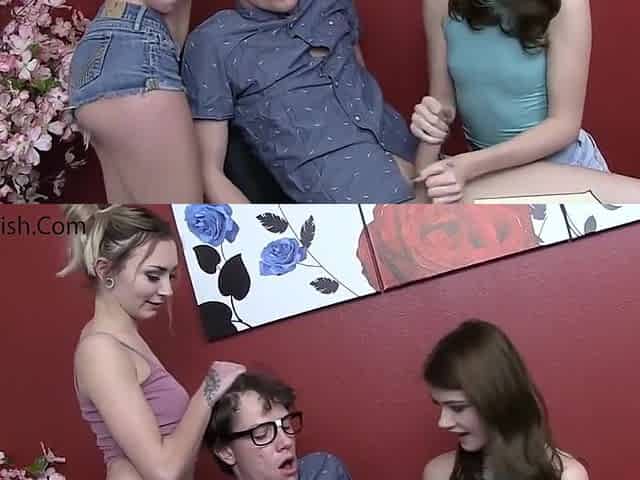 Femdom HJ babes give painful HJ trio in BDSM session
