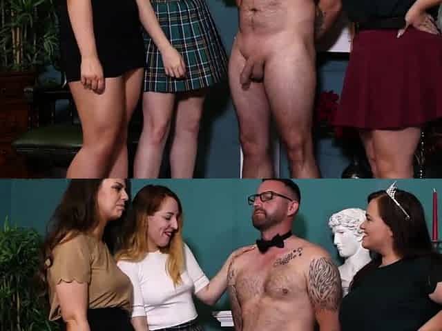 CFNM femdom babes sucking old cocks in orgy till cumshot