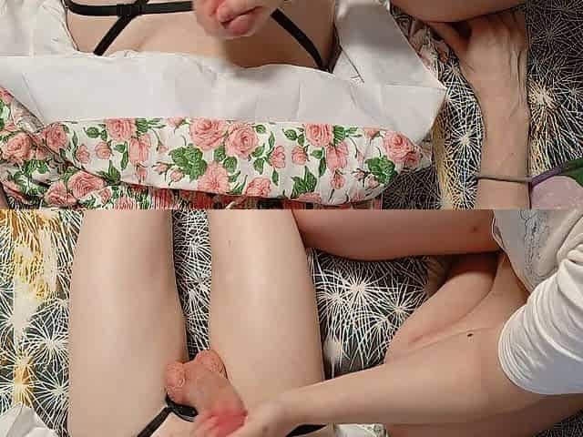 21yo babe jerking lovers cock with toy and orgasm control