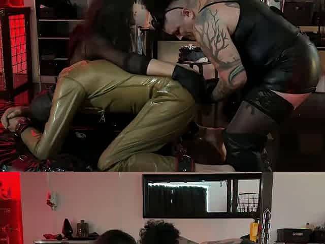 CFNM latex femina gives BDSM BJ and HJ