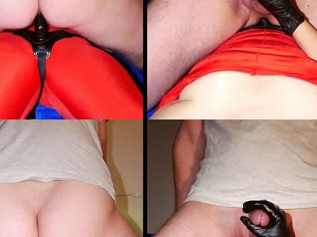 Sexy babe uses strap-on to peg him after giving a prostate massage - Femdom anal play with latex gloves handjob