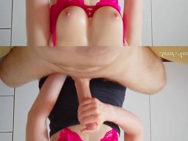 Teasing 21yo femdom GF sucks and wanks POV cock at home