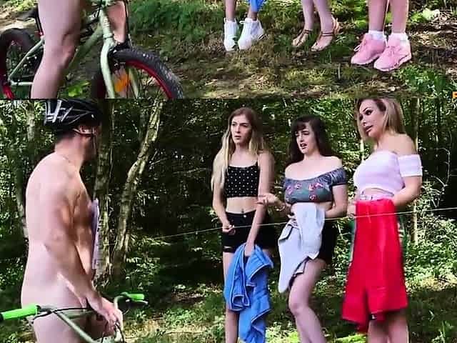 Sexy Brunette Females Tease and Play a Guy Before Domination Fuck