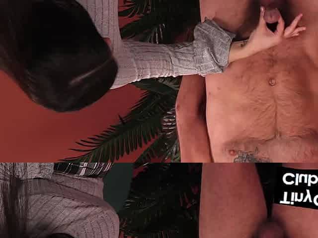 Amateur Sex CFNM cougar blowing penis for cum load on her jugs