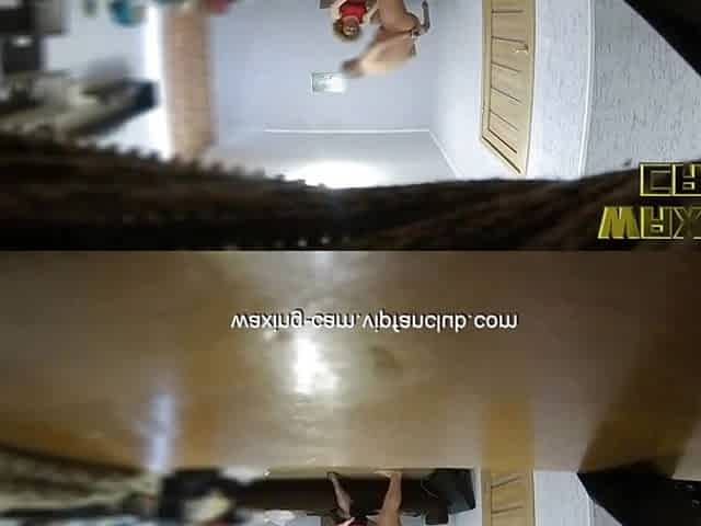 Bossy mistress in vinyl pants dominates naked man in homemade vid