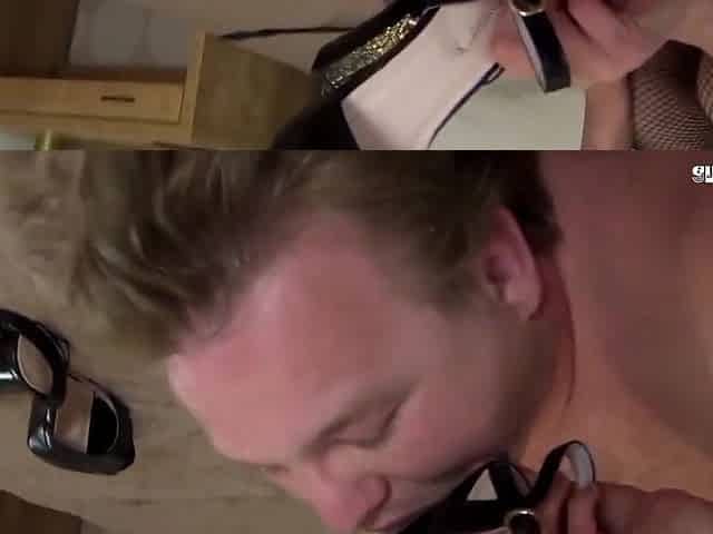 Blond Dominatrix Milk Lenny In Hos Own Face With Gloves - FemdomSex