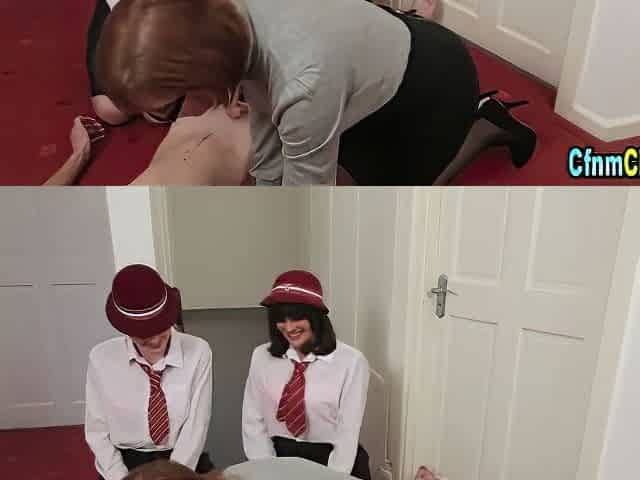 PURE CFNM HD - CFNM stylish hotties in costume and heels suck weenie in group BJ
