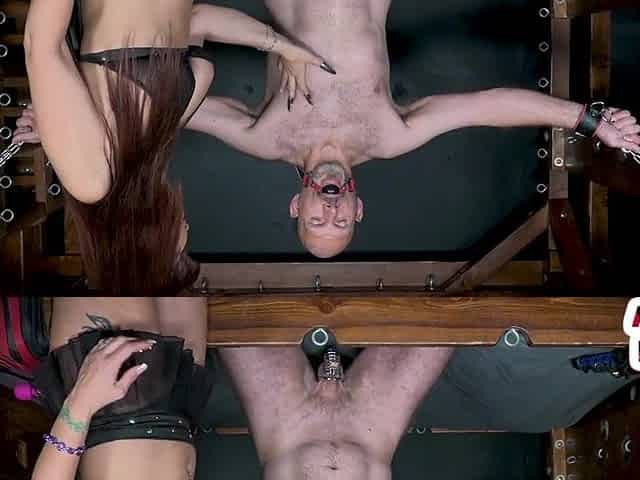 Lady. Dominatrix and her experiments with a slave. Second angle. Full video