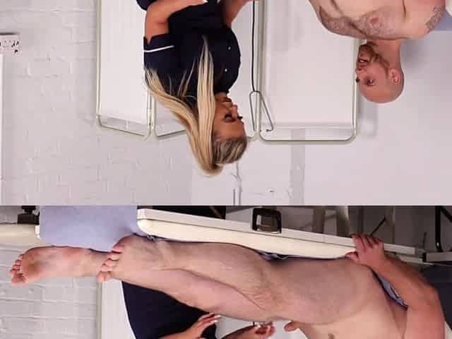 SPH nurse in lingerie masturbates a patients small cock in the hospital