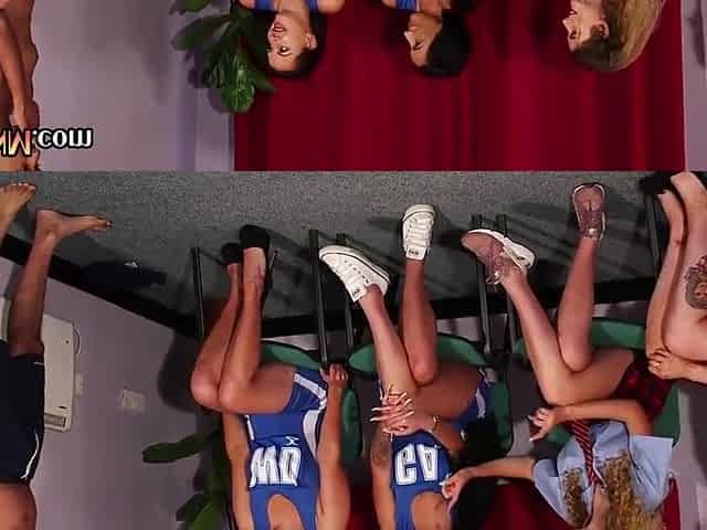 CFNM cheerleaders and collegegirls wank cock in group HJ