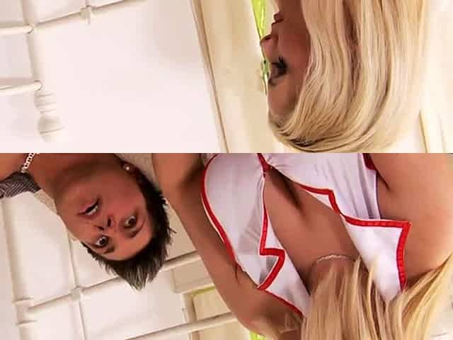 Dominant nurses fuck a guys ass with a dildo in a threesome
