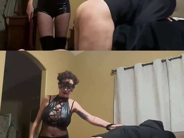 Group dominas pegging sissy cleaning guy