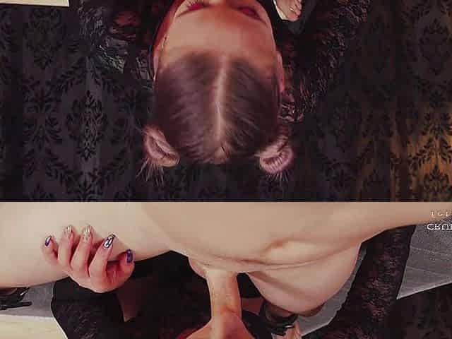 Beautiful brunette dominatrix makes her slave cum after some pegging