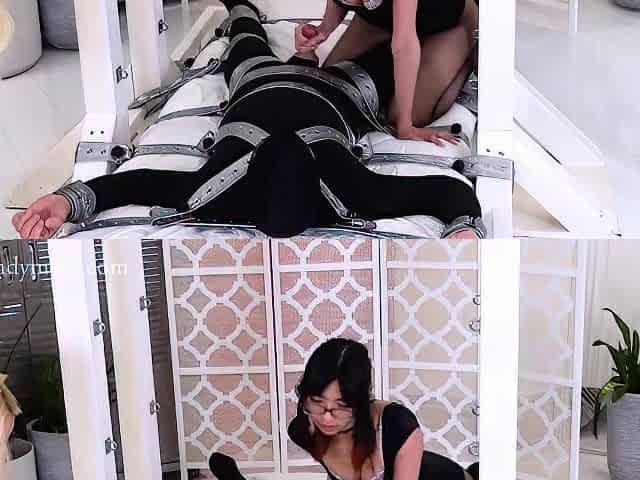 Femdom fetish mistresses fuck bdsm loser with strapon