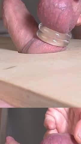 Ruined tugjob in latex gloves restrained by the balls