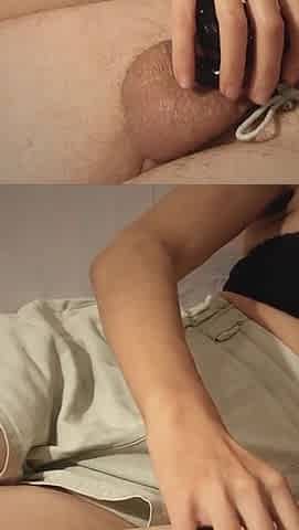 Femboy jerk off in front of girl
