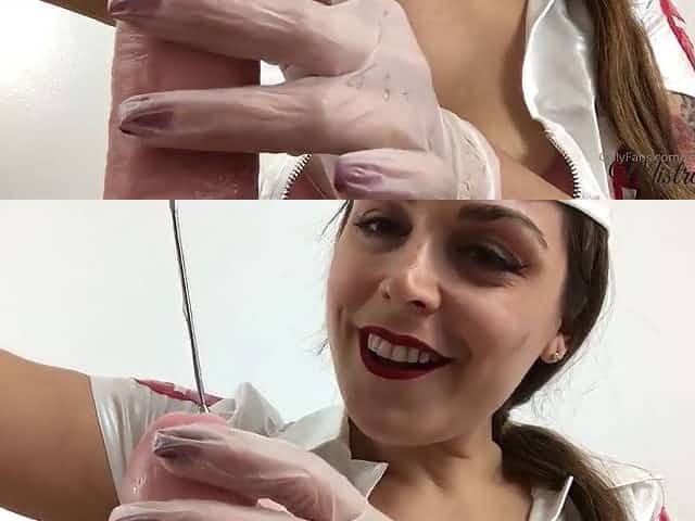 Sexy Nurse With Latex Gloves Empties Slave Balls