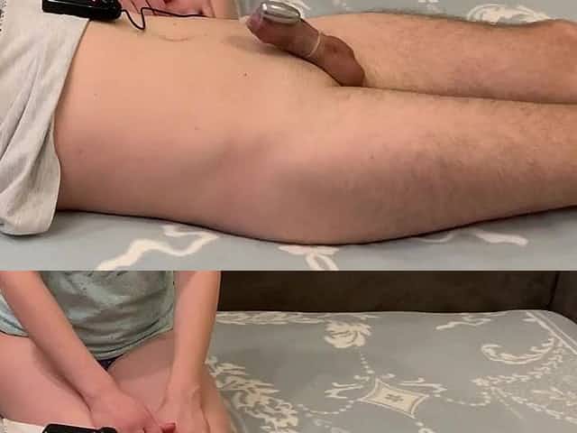 Femdom wife milking knob to spouse