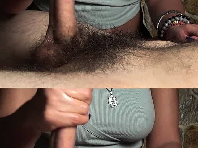 Brunette handjob amateur pulls for cum with lucky guy