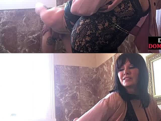 Femdom busty MILF in lingerie pegging her bondservant