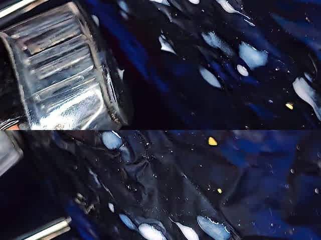 Off-shoulder glossy shiny nylon bodystocking and nylon gloves teasing tugjob